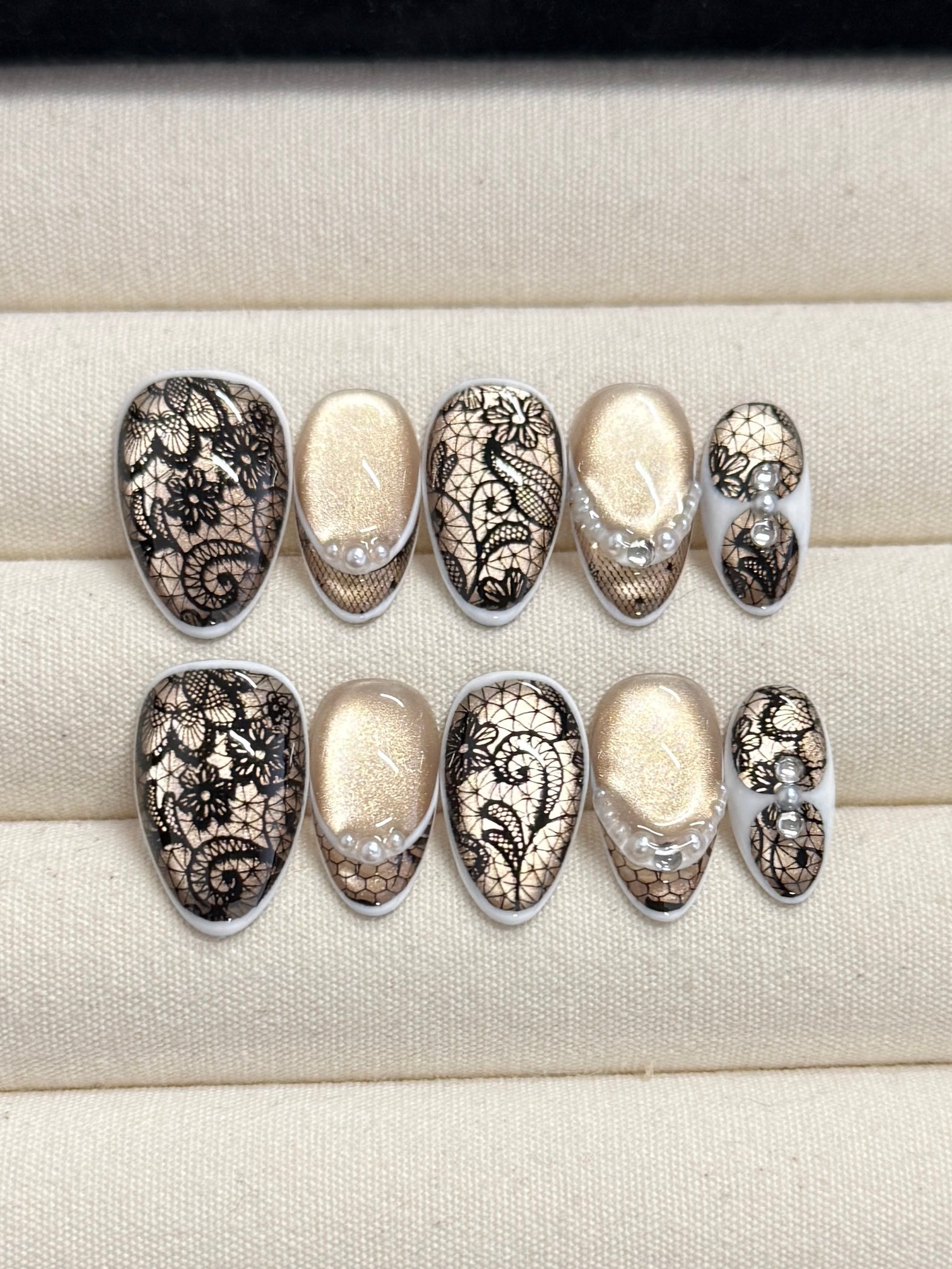 Our press-on nails are handmade using acrylic manicure tips and salon-grade gel. Designed with durability in mind and are reusable for multiple wears.