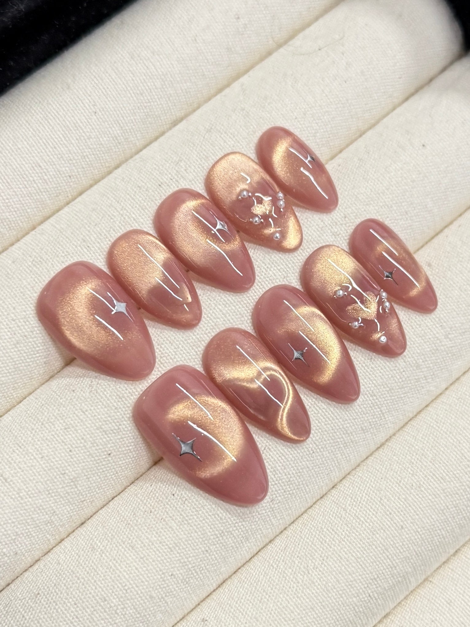 Our press-on nails are handmade using acrylic manicure tips and salon-grade gel. Designed with durability in mind and are reusable for multiple wears.