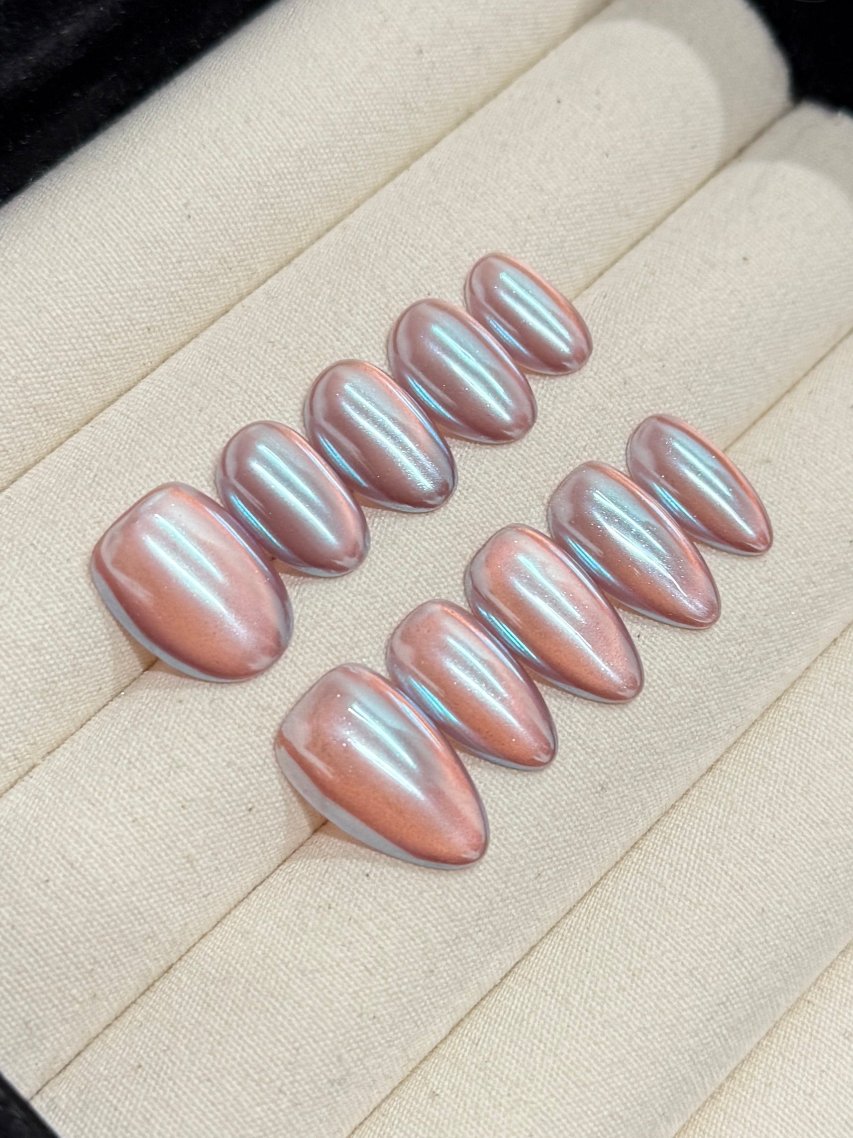 Our press-on nails are handmade using acrylic manicure tips and salon-grade gel. Designed with durability in mind and are reusable for multiple wears.