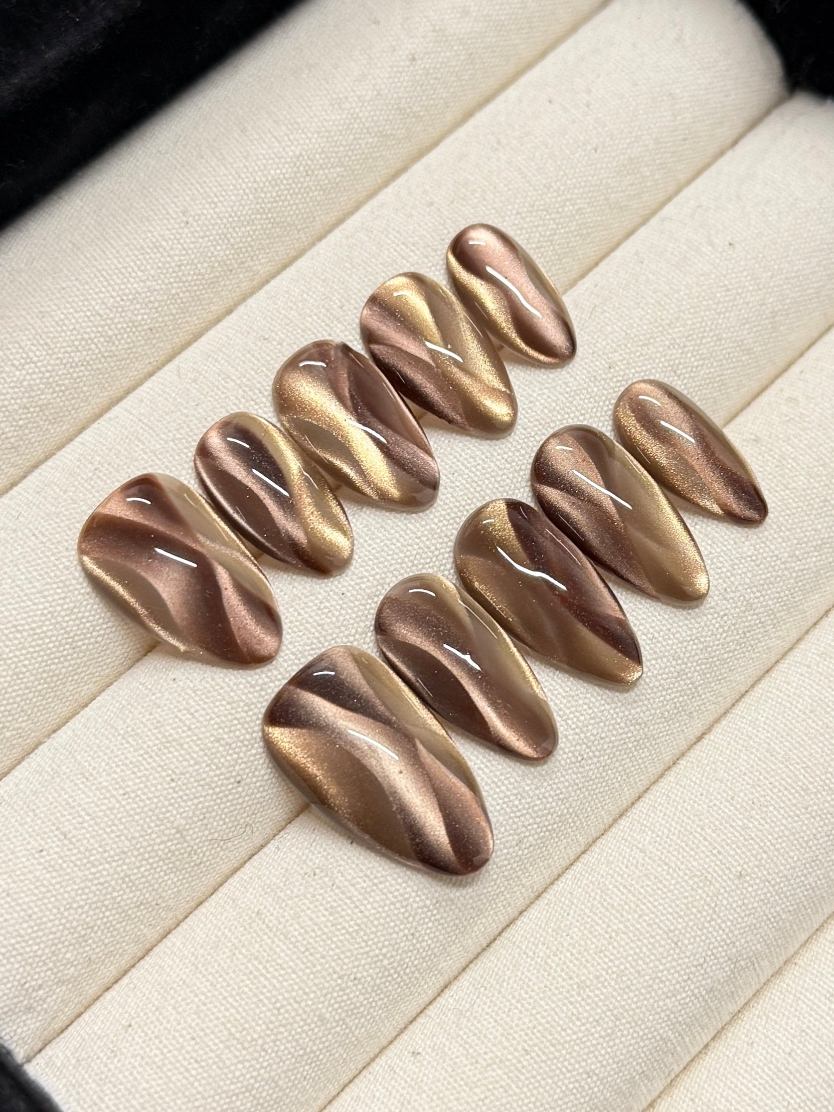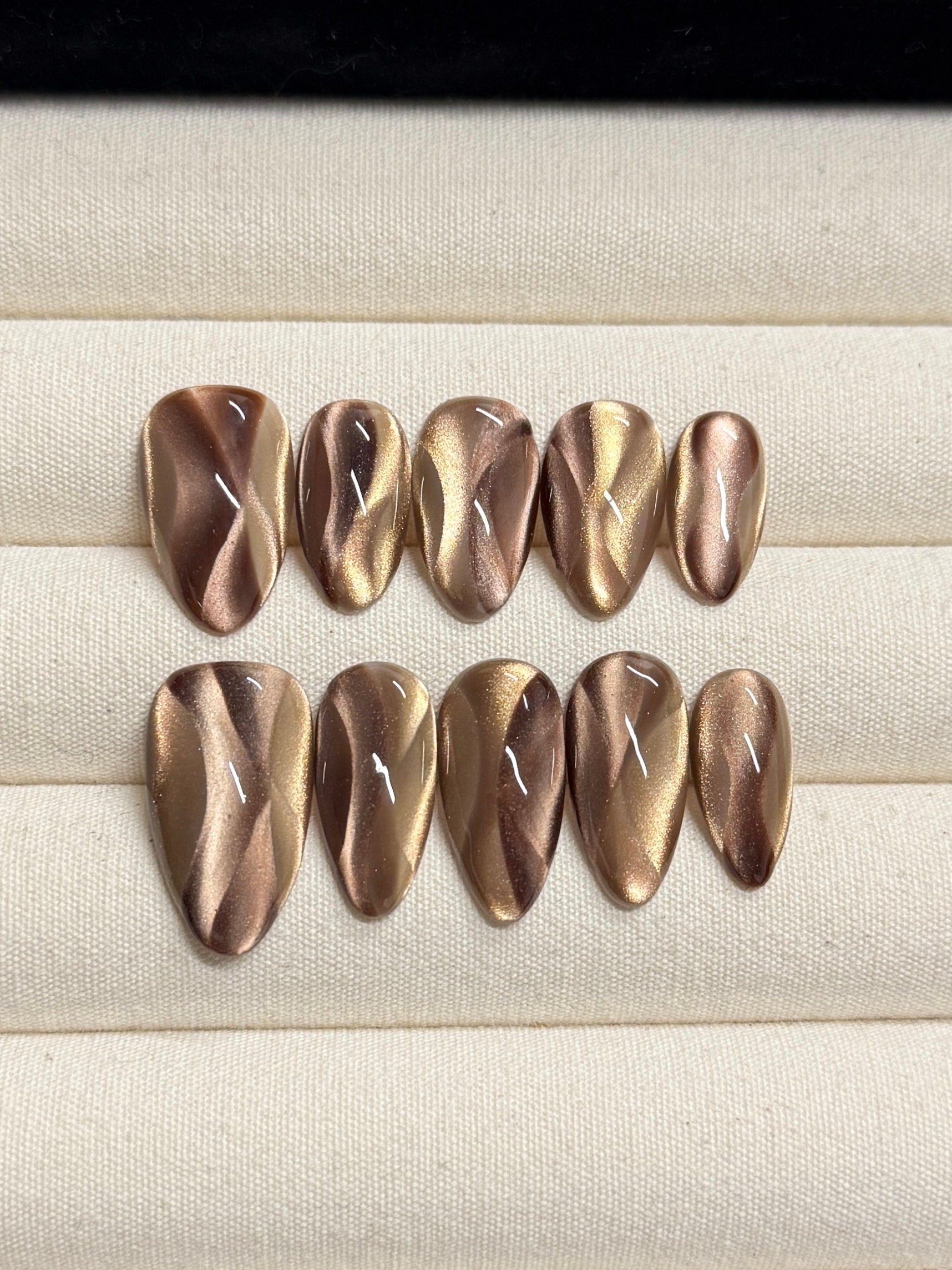 Our press-on nails are handmade using acrylic manicure tips and salon-grade gel. Designed with durability in mind and are reusable for multiple wears.