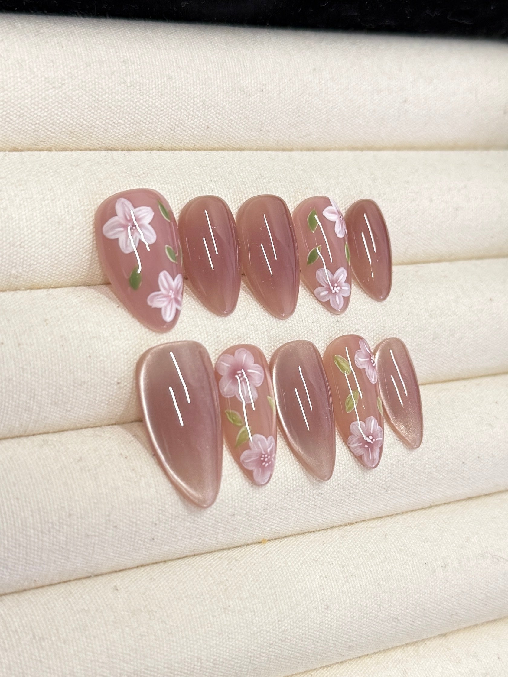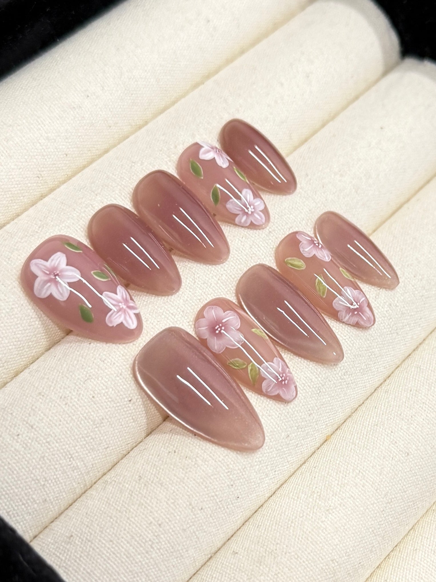 Our press-on nails are handmade using acrylic manicure tips and salon-grade gel. Designed with durability in mind and are reusable for multiple wears.