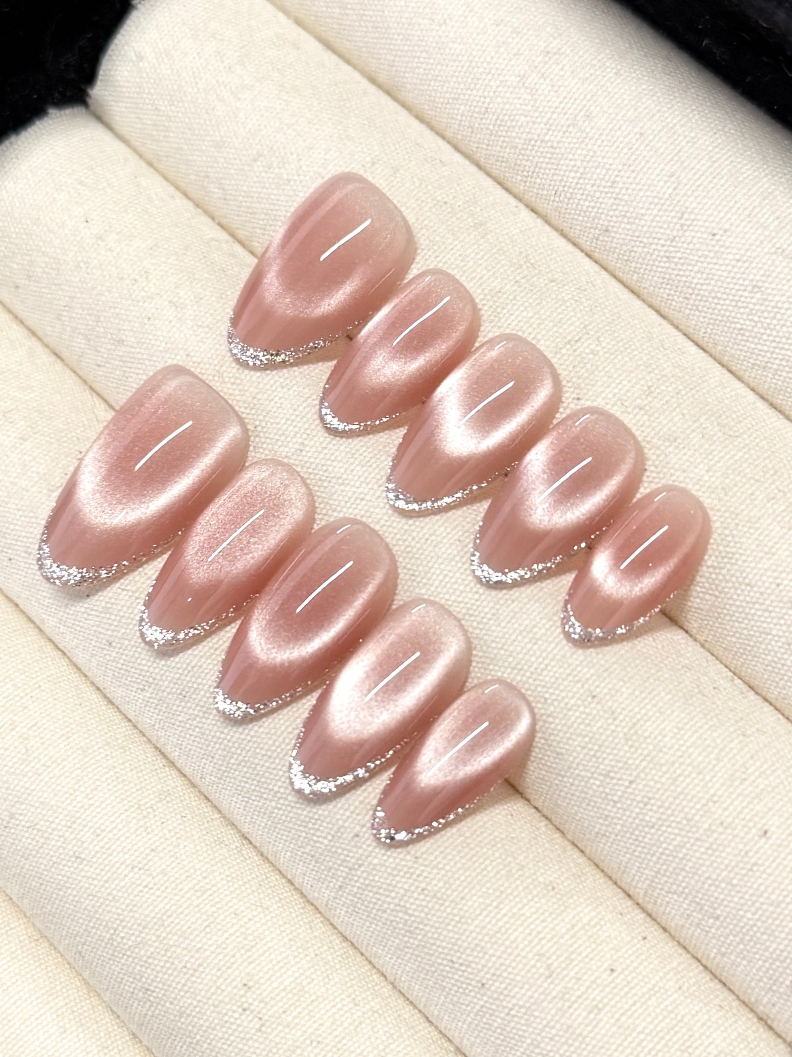 Our press-on nails are handmade using acrylic manicure tips and salon-grade gel. Designed with durability in mind and are reusable for multiple wears.