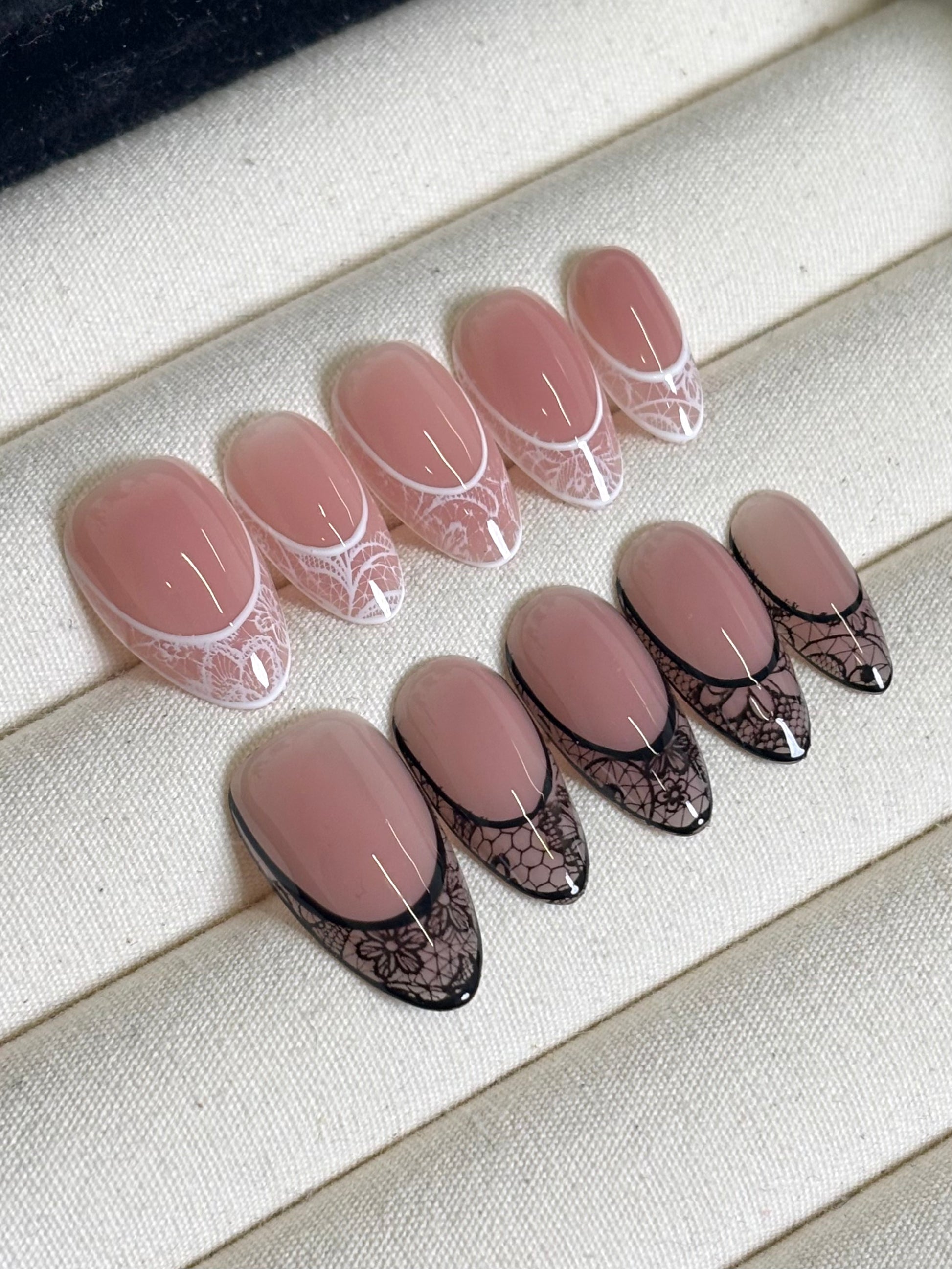 Our press-on nails are handmade using acrylic manicure tips and salon-grade gel. Designed with durability in mind and are reusable for multiple wears.