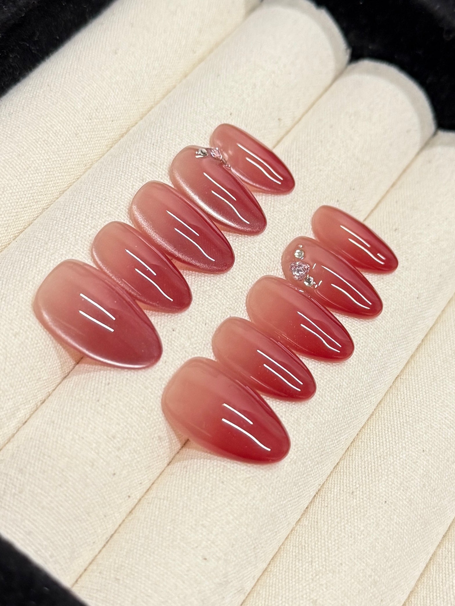 Our press-on nails are handmade using acrylic manicure tips and salon-grade gel. Designed with durability in mind and are reusable for multiple wears.
